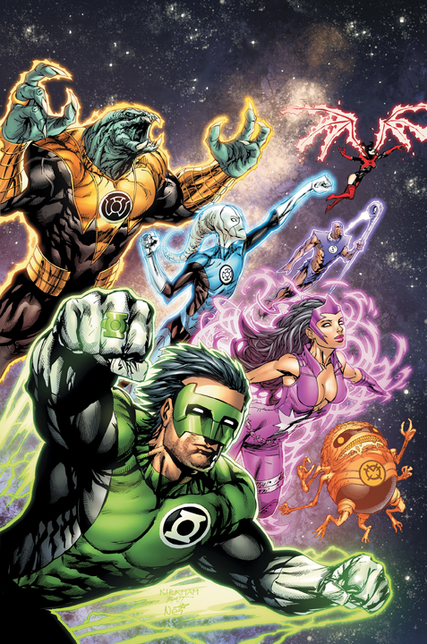 GREEN LANTERN: NEW GUARDIANS. Another excellent team-up series written by Tony Bedard, starring Kyle Rayner (Hal Jordan has his own series of course, where he’s forced to work alongside his archenemy Sinestro, which I highly recommend), in which an unprecedented joining of rival corps members from the different colors of the emotional energy spectrums of the universe. To sum it up you have: Arkillo (Sinestro Corps: the Yellow power of Fear), Saint Walker (the Blue energy of Hope), Munk (of the Indigo Tribe of Compassion), Fatality (the Star Saphires /Passion), Glomulus (Orange/Greed), and Bleeze (RAGE of ‘the Red Lanterns’!) all working together with Rayner’s Green light of Willpower. It makes for an intriguing mix to say the least!