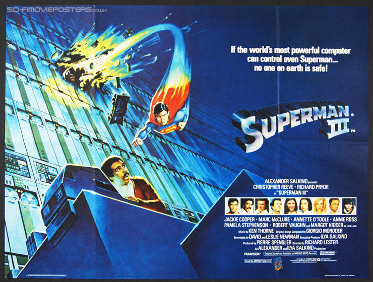 I love Richard Pryor (who plays a computer hacker who helps create an artificial intelligence super computer), but he didn’t need to be the main character of this film. The previous Richard Donner directed movies were cheesy as all get out with a ton of comic relief, but that wasn’t the main attraction before. Superman: the Movie is a classic, it’s a timeless origin story that spans generations, where Clark Kent / Kal-El fought off criminal mastermind Lex Luthor’s evil plot for… land domination (?) along with Kryptonite, and nuclear weapons. It’s sequel continued the story with the Kryptonian Phantom Zone escapees: General Zod while Clark dealt with the loss of his powers (another super-hero staple at this point), but after those two we got this?!