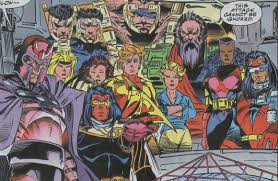 Characters involved: Magneto, Exodus, Fabian Cortez (Acolytes), Havok, Polaris, Random, Quicksilver, Wolfsbane, Multiple Man, Strong Guy (X-Factor), Shadowcat, Phoenix, Nightcrawler (Excalibur), Cable, Cannonball, Boom Boom, Rictor, Sunspot, Warpath, Shatterstar, Feral (X-Force), Professor X, Cyclops, Storm, Jean Grey, Beast, Iceman, Archangel, Wolverine, Colossus, Bishop, Gambit, Rogue, Jubilee, Psylocke (X-Men)