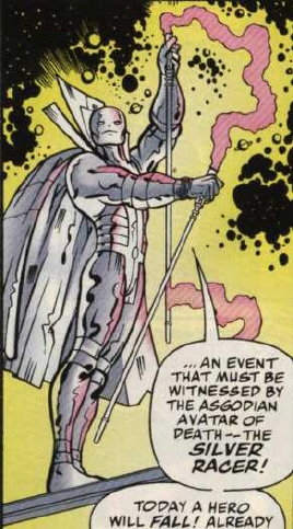 No, no, no. They took a sweet (albeit kind of goofy concept when you think about it) character like the Silver Surfer and mixed him with a silly (and stupid when you think about it) character like the Black Racer, and the result is basically a lamer version of the Black Racer. When the only thing you can think to do with an avatar of death who rides skis to make him cooler is to coat him in silver, you’ve already lost the battle. For shame.