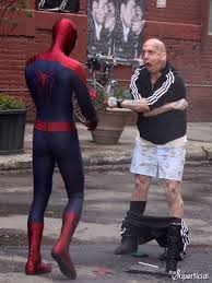 Then we immediately jump over to Spider-Man swinging through the city (the first of many mid swings this movie goes through). Anyways, there’s a pretty decent scene where Spider-man takes on a Russian Paul Giamatti (aka The Rhino) whose stealing some plutonium from Oscorp or something. This scenes goofy, but it works and it establishes Spider-Man as a hero, in case we didn’t already know that for some reason, but it’s kind of an obligatory scene and part of why we love super hero movies. What’s better though is the next scene where Peter changes into graduation robes and temporarily forgets he has on his mask.
