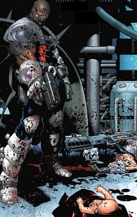 Meanwhile, the “New X-Men” team (the X-Men students) have a serious mad on for the Purifiers, who attacked the mansion and killed over 40 of their friends recently. So, finding out the X-Men know where they are and are not including them really pisses them off, so they sneak off to destroy the shit out of the racist turds. When they get there they run into the undercover Rictor, and all are dismayed to learn that the Purifiers are working with Lady Deathstrike and the Reavers (a group of cyborgs that hate mutants). During the ensuing fight, Hellion is seriously injured by Deathstrike and Pixie teleports everyone to relative safety.