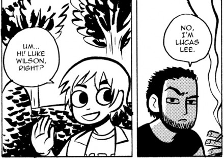 Anywho, Lucas and Scott take a break from the fight to sit on a bench and talk about Ramona. Earlier on, Ramona told Scott that they were in drama class together, “or maybe it was math, but I just remember there being a lot of drama.” Turns out that Lucas never really changed, because he tears up over how Ramona broke his heart, before revealing that he’s part of the ‘League of Evil Ex-Boyfriends’!