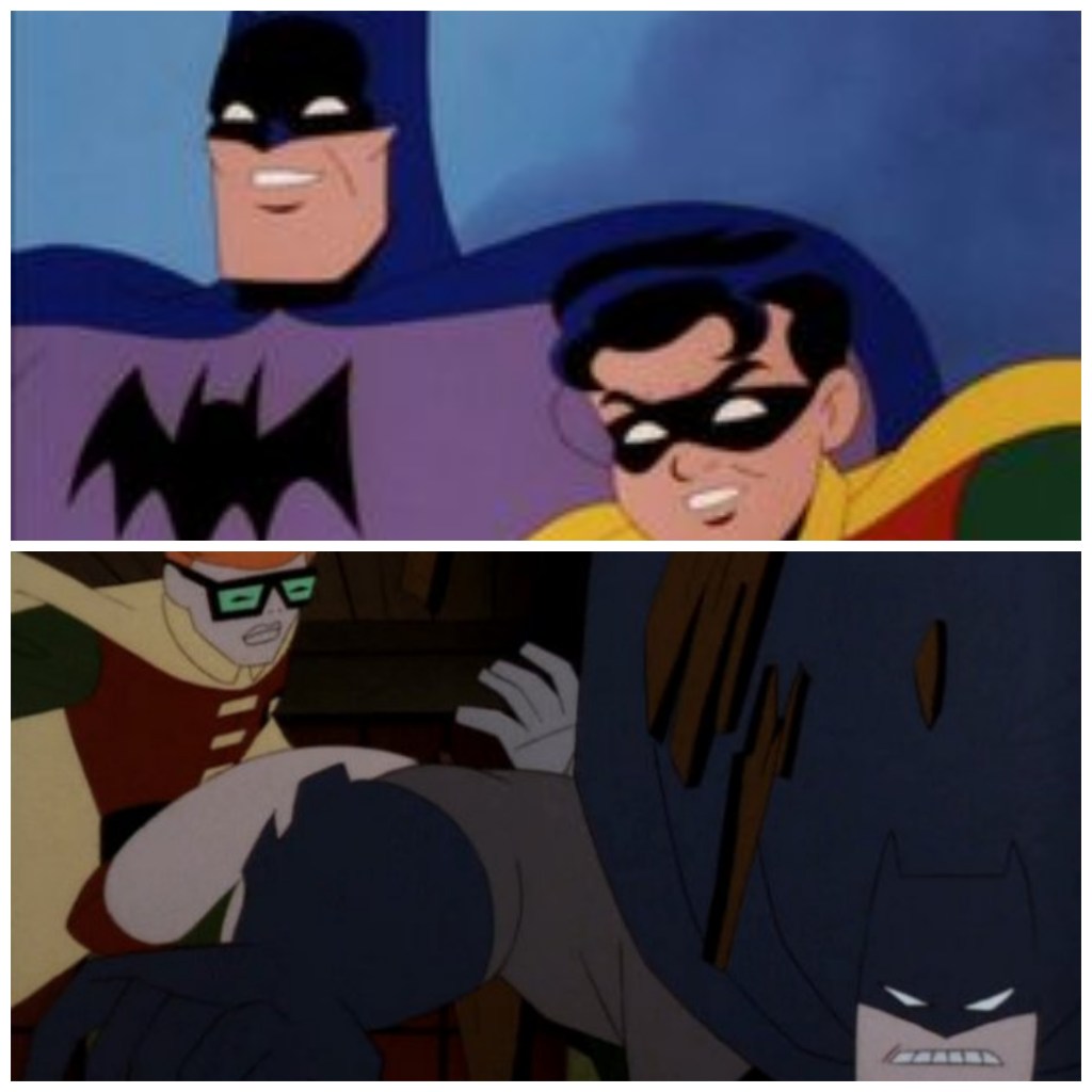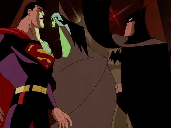 *It was also followed up by another amazing crossover episode on Superman: The Animated Series called “Knight Time” where Robin (Tim Drake) has to team up with Superman *disguised as Batman* to save Bruce from Brainiac! It’s hilarious to see Clark trying to fool Gordon into thinking he’s Batman, and then later completely kicking Bane’s ass with ease. Both of these crossovers are required viewing!