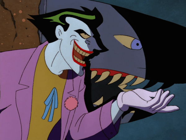 There are a lot of truly great Joker episodes throughout this run, from “The Man Who Killed Batman” to “Joker’s Millions”, but one of the most iconic one’s is “The Laughing Fish”! Adapted from the storyline from the Detective Comics storyline by Steve Englehart, with elements from Denny O’Neal and Neal Adams’s “The Joker’s Five Way Revenge”, this episode follows Batman as he tries to untangle a mystery surrounding an insane scheme by The Joker attempting to trademark a mutated brand of sea food! It all leads to an epic confrontation at an aquarium, where Batman has to fight off a shark! Once again, Mark Hamill absolutely delivers.