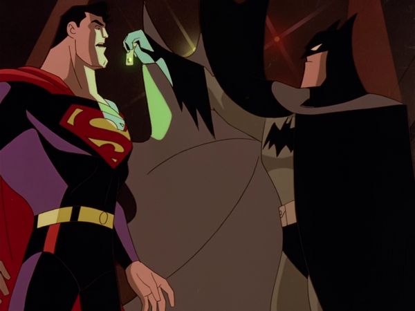 *It was also followed up by another amazing crossover episode on Superman: The Animated Series called “Knight Time” where Robin (Tim Drake) has to team up with Superman *disguised as Batman* to save Bruce from Brainiac! It’s hilarious to see Clark trying to fool Gordon into thinking he’s Batman, and then later completely kicking Bane’s ass with ease. Both of these crossovers are required viewing!