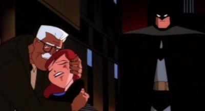 By far one of the most deep and introspective episodes is “Perchance to Dream”! It’s also easily the best Mad Hatter storyline in Batman lore to date. Bruce Wayne wakes up to a world where his parents are still alive, he’s engaged to Selina Kyle, and (gasp!) he isn’t Batman!? It’s all too good to be true, but Bruce can’t shake the feeling that something’s not right. In a twist worthy of The Twilight Zone, Bruce realizes that he’s trapped in some kind of dream state because he’s unable to read the newspaper, and the only way to wake up from the dream is to… commit suicide?! Bruce climbs to the top of a bell tower during a storm and confronts “Batman” who rips off his cowl to reveal the Mad Hatter who monologues at him about the nature of reality. Ultimately, Bruce sees through the charade, wakes up from the mind control trance, and punches the crap out of the Mad Hatter before continuing to be Batman.