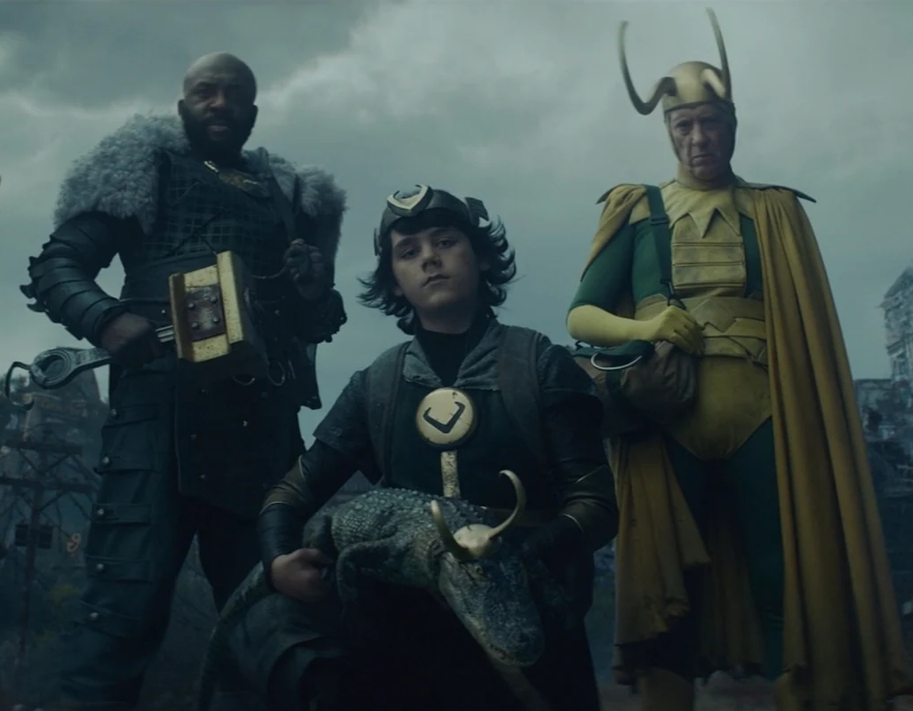 After a heart-wrenching flash back to Sylvie as a kid, in Asgard, being taken away by the TVA, we jump forward to Loki and Sylvie as they await the end of their worlds as the doomed planet Lamentis crumbles around them. She explains to her male counterpart that she escaped their custody as a child and had been on the run ever since, hiding in apocalyptic events, “That’s where I grew up, the end of a thousand worlds… and that’s where I’ll die.”