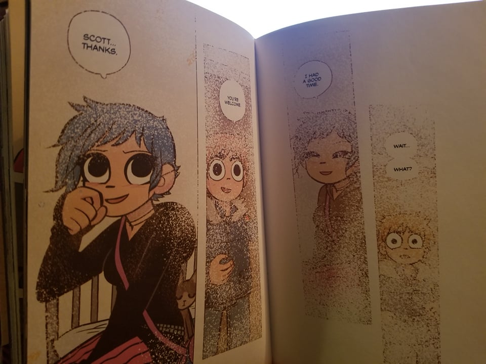Scott rushes home to make up with Ramona, but just as he’s pouring his heart out to her she starts crying and things get fuzzy. We get some of the most emotionally packed panels in the series as Ramona says, “I’ve done bad things, I’m a bad person.” Scott reassures her, “We both have. Everyone has! People can change Ramona.” She turns to him as she starts to disappear in a shower of light and tells him, “Thanks … I had a good time.”