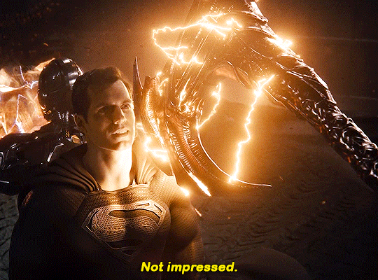 Wonder Woman and Aquaman hold their own against Steppenwolf, while Cyborg attempts to separate the unity and Barry tries to pick up speed to charge him. As Cyborg is working to stop the unity, Steppenwolf gets ready to swing his axe down on him, but then at the last second, Superman returns blocking the massive axe with his neck before freezing and shattering the weapon with ease before pummeling the interdimensional despot and lasering off one of his horns!