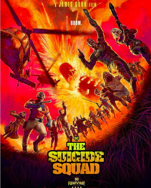 Starring: Margot Robbie (Harley Quinn), Idris Elba (Bloodsport), John Cena (Peacemaker), Viola Davis (Amanda Waller), Joel Kinnaman (Col Flagg), Nathan Fillion (TDK), Jai Courtney (Captain Boomerang), Flula Borg (Javelin), Michael Rooker (Savant), Mayline Ng (Mongal), Pete Davidson (Blackguard), Sean Gunn (Weasel, Calendar Man), Daniela Melchior (Ratcatcher 2), Dee Bradley Baker (Sebastian- voice), David Dastmalchian (Polka-Dot Man), Sylvester Stallone (King Shark- voice), Peter Capaldi (Thinker)