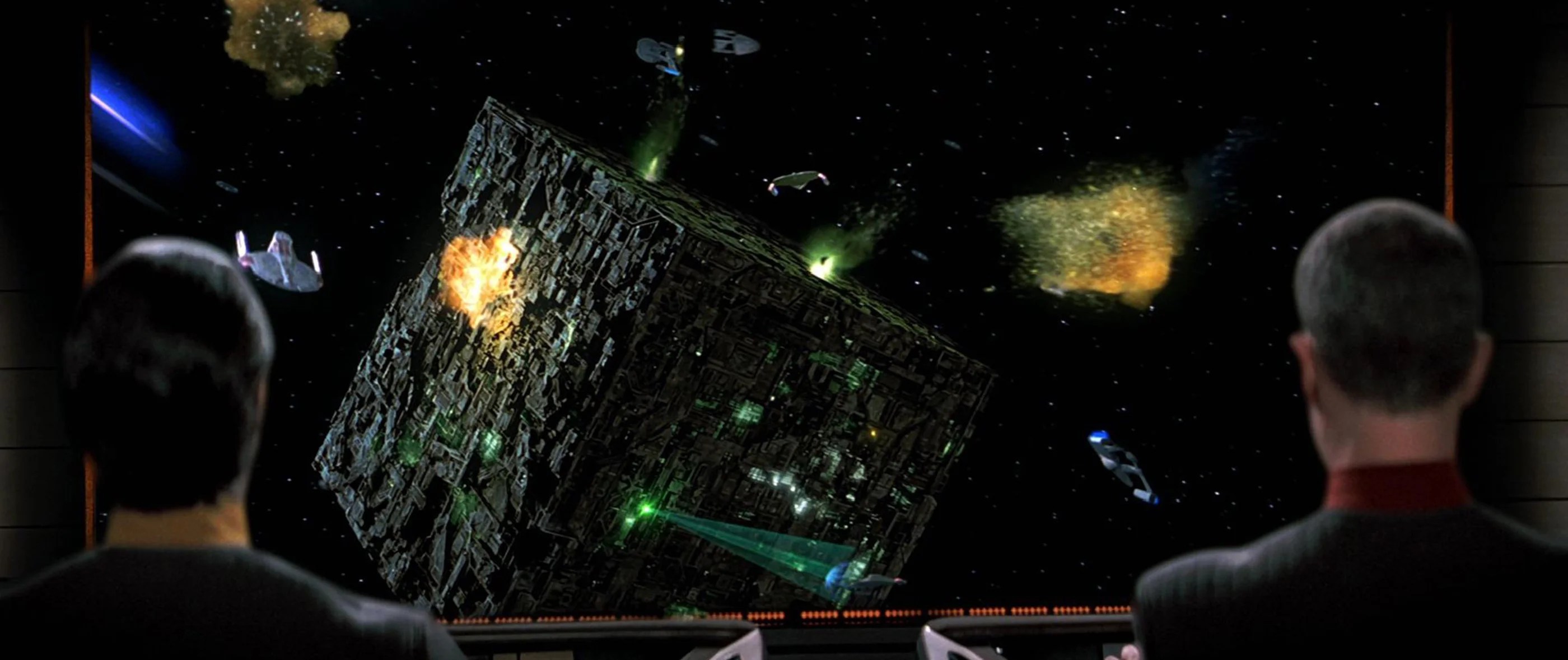 Then Star Trek: First Contact (1996) swooped in and gave Wrath of Khan a run for its hard-earned Latinum! First Contact isn’t just a great Star Trek movie: it’s a great movie, period. It’s both one of the scariest Trek entries and one of the most important cannon-wise. And it happens to be directed by Riker himself, Jonathan Frakes! First Contact is another time-travel adventure, but this time, after destroying a Borg Cube headed for Earth, Captain Picard and the crew of the Enterprise-E have to follow the Borg Queen (Alice Krige) back in time to stop her from altering history – specifically 2063: Earth’s First Contact with an alien species!