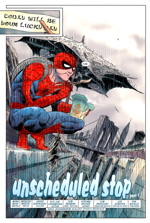 I really like this story. I love when Spidey deals with the underworld element, like Hammerhead, Tombstone, and the Kingpin, and the Kingpin is all over this one. I also like when Peter’s parents’ time as spies is revisited. I will read anything Mark Waid writes, and I really adore the way he writes Spider-Man. Gabrielle Dell’Otto’s painted work is always phenomenal, and this is no exception.