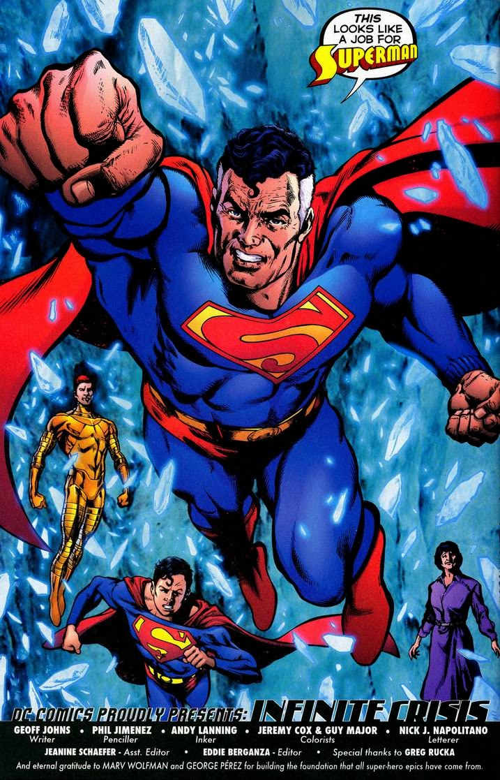 The ultimate adversary in the “Infinite Crisis” saga was revealed to be a powerful / evil variant of Superman, “Super Boy Prime”!